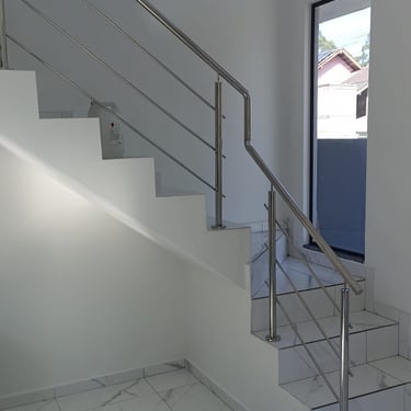Fabricados com aço inox de alta qualidade, este corrimão oferece resistência superior à corrosão e durabilidade excepcional, fácil limpeza, ideal para uso interno.