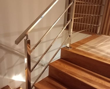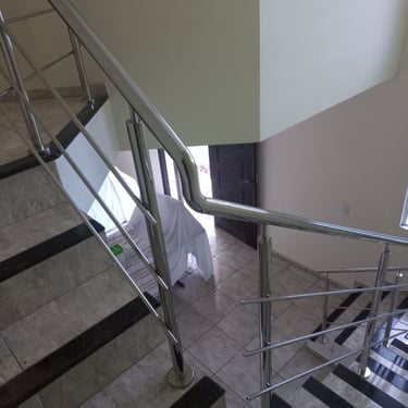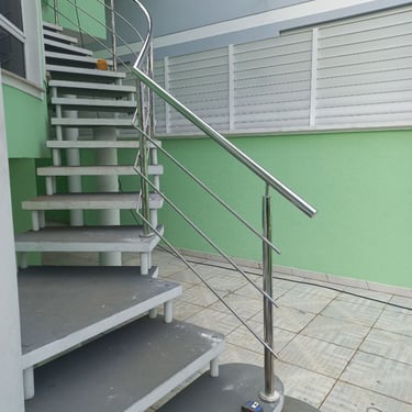 Fabricação e instalação de corrimão e guarda-corpo em aço inox redondo e polido.
