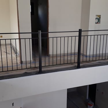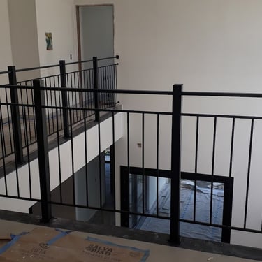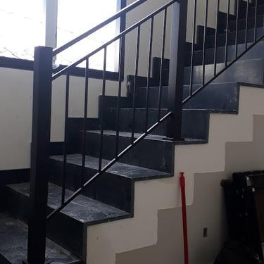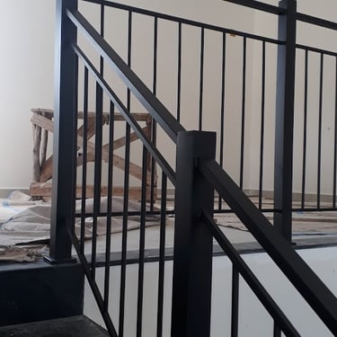 Fabricação e instalação de corrimão e guarda-corpo em aço inox quadrado, finalizado com pintura preta.